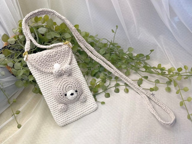 くまさんのお顔の付いた 2wayスマホポシェットです✧‧˚ 紐の長さは毛糸の伸縮性も考慮して 110cmでお作りしました 斜めがけでちょうど腰辺りです 蓋にはスナップボタンを取り付けました◡̈♥︎ カニカン付きですので紐と本体は取り外し可能です バッグインでもお使い頂けます ナチュラルカラーでお作りしたので 大人の方でも使いやすいかと思います お子様のプレゼントにも! ■詳細■ 綿100%毛糸 縦15cm 横9.5cm 紐の長さ約110cm 毛糸ですので伸縮性があり携帯の出し入れがしやすいです ◾︎お願い◾︎ ひとつひとつ手作りの為、若干の表情・サイズ違いがあるかもしれません。 全く同じものは作れないためご了承ください。 写真ですので実物と多少色味が異なる場合がございます。