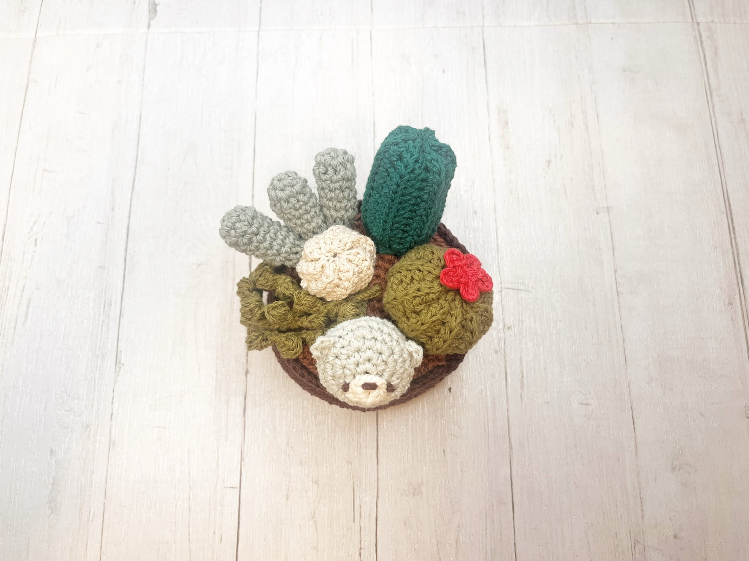 他にはないキュートなフェイクグリーンのあみぐるみができあがりました